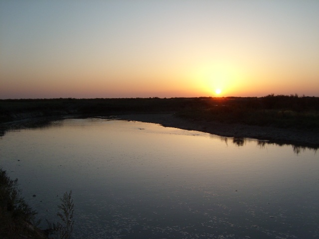 晨光中的额济纳河。